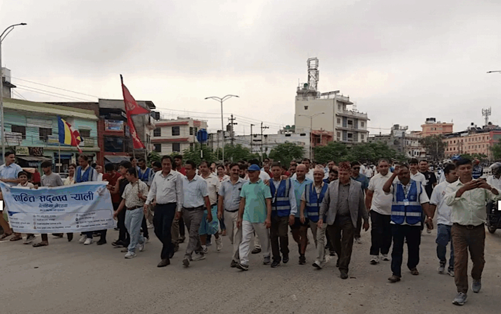 Calling attention to the losses in the private sector: business owners and professionals at a rally in Bhairahawa today.