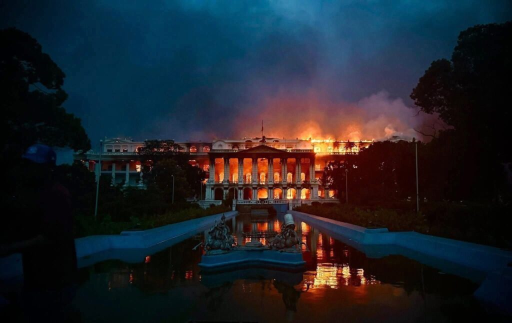 The monument of central power in Nepal: Singha Durbar still burning Tuesday night. (Nepali News/Facebook).